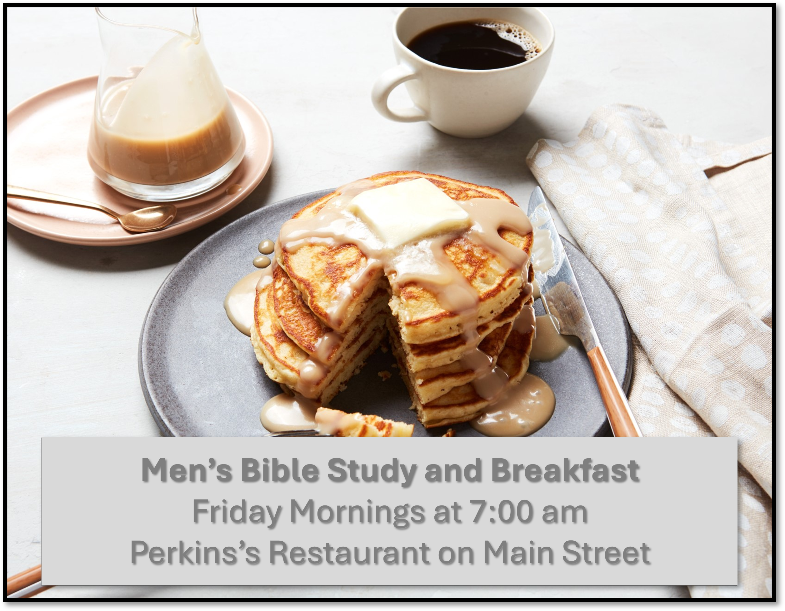 Mens Bible Study 0 Likes 392 Views The Men’s Group meets every Friday at 7:00 am for breakfast at the Longmont Perkins located at 2051 N. Main Street. During these meetings, they delve into the study of different books from the Bible.